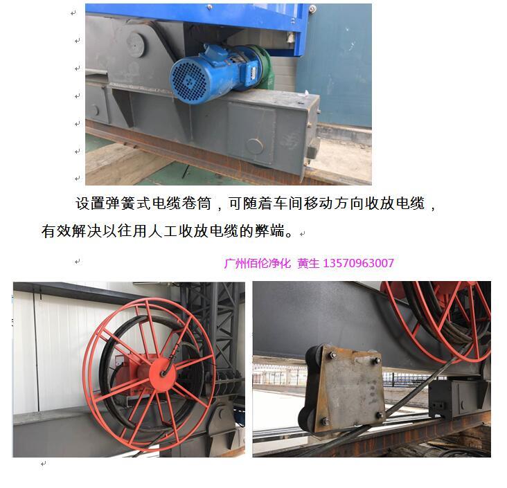設(shè)置彈簧式電纜卷筒,可隨著車間移動方向收放電纜,有效解決以往用人工收放電纜的弊端。